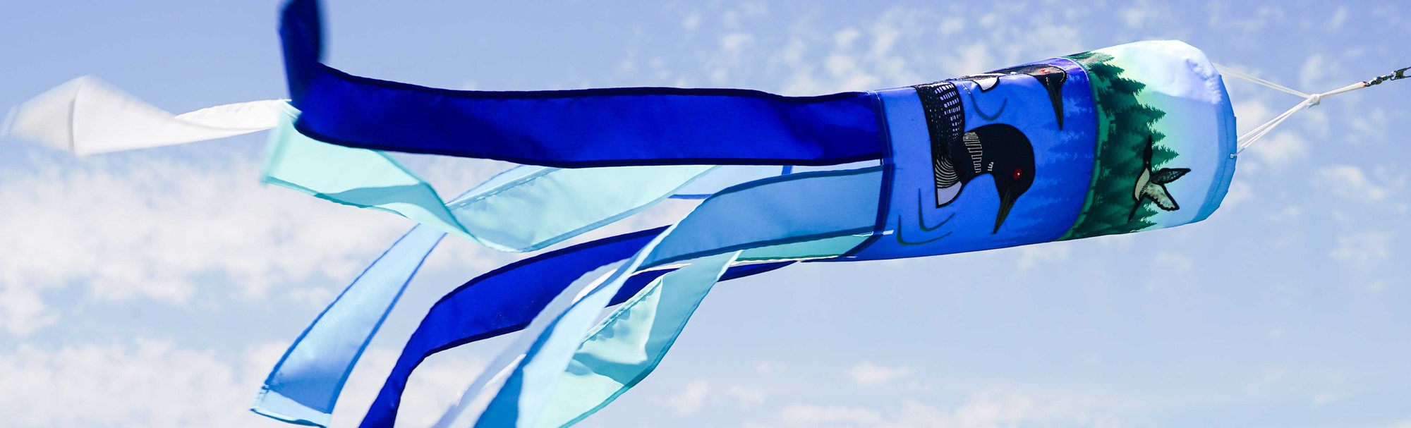 The Dancing Kokopelli 40" Windsock features detailed printed and appliqued graphics with embroidered details that is perfect for any time of year and bring a unique southwest flair to any home. The windsock's color-coordinating tails flutter in the breeze.